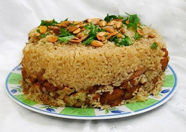 ثم الطبق المفضل بالنسبة لي المقلوبة ، وهي مكونة من الأرز والباذنجان والبطاطس والبصل والثوم وغيره من الإضافات الأخرى .