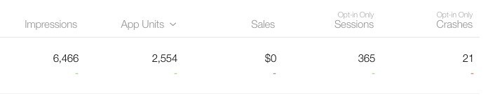 الظهور - وحدات التطبيق - المبيعات (يبدو ان التطبيق مجاني لذلك 0 ) - الجلسات - التحطم ( تحطم التطبيق من اخطاء برمجية او ماشابه)