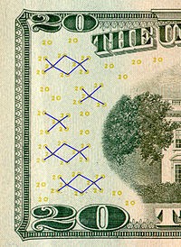 تسمى هذه الصور بEURion وهي على شكل مجموعة اوريون الفلكية ويجري استخدامها في خمسين دولة اوروبية اضافة الى الولايات المتحدة والعديد من الدول الاخرى "تستخدم على العملة التركية ايضا"