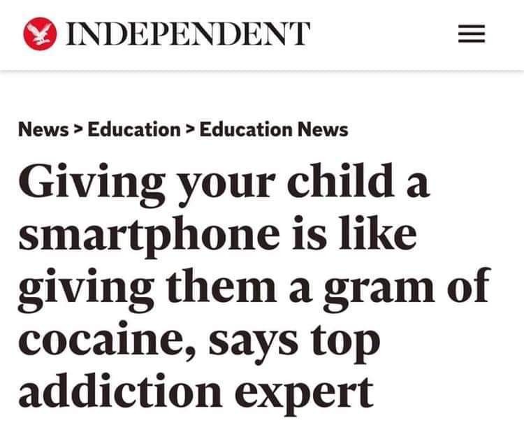 جريدة الإندبندنت البريطانية نشرت دراسة أجريت بالتعاون مع مدرسين وأولياء امور ووصلت لنتيجة خطيرة جداً، وهي طبقاً لكلام خبراء علاج الإدمان أن تأثير إعطاء الطفل الهاتف المحمول أو التابلت يشبه تماماً إعطائه زجاجة كحول أو جرام من الكوكايين. الفترات الأخيرة كان يوجد تحذيرات من خطورة هذه الأجهزة و لكن التحذيرات حالياً أكثر خطورة، و أيضاً للمراهقين و أن خطورتها عليهم أيضاً تشبه تماماً إدمان المخدرات والكحول، ويتم علاجهم بنفس الكيفية التي يُعالج بها إدمان الخمور والمخدرات، الدراسة أكدت أيضاً أن ثلث الأطفال البريطانيين في المرحلة العمرية من 12 إلى 15 سنة في حاجة للعلاج من إدمان التابلت و الهواتف الذكية ، وأنهم إكتشفوا فيما بعد أن أغلب المراهقين دخلوا المواقع الإباحية و حالياً بيعتبروا تداول الصور الإباحية بينهم شئ عادي، والدراسات أكدت إنهم بيعتبروا من 6 إلى 6 ساعات ونصف إسبوعياً مدة كبيرة إن طفل يقضيها في إستخدام هذه الأجهزة.