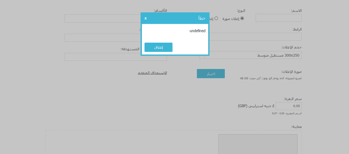 منذ أكثر من أسبوعين وأنا احاول انشاء اعلان صوري ولا استطيع بسبب انه يطلب مني ادخال صورة بصيغة وابعاد معينة وعند ادخال الصورة الموافقة للشروط تظهر رسالة خطا بان الملف غير صالح فجربت الاعلان النصي ولكن لايوجد اي نتيجة او تفاعل يوجد ظهور ولكن لااحصل على نقرات وتواصلت مع الدعم خلال الاسبوع ثلاث مرات ولدي اكثر من تذكرة مفتوحة