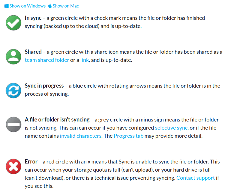 تلك العلامة من نوع Desktop overlay icons وموجودة في كل من Windows و Mac و معناها أنك متزامن - تعني الدائرة الخضراء بعلامة الاختيار أن الملف أو المجلد قد انتهى من المزامنة وأنه محدث, وتظهر بالضبط لحظة نجاح حفظ النسخة الاحتياطيًة إلى السحابة لل calendar أو الإجتماعات الخاص بك (التحقق من التقويمات الخاصة بك لأي اجتماعات Zoom وإضافتها إلى اجتماعاتك القادمة في Zoom. إذا تم تمكين التذكيرات ، فسوف يرسل لك Zoom تذكيرات باجتماعات Zoom المضافة إلى هذه التقويمات.)