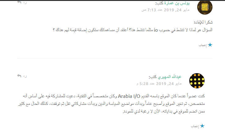 كما أن مستوى نقاش وثقافة مستخدمي مواقع التواصل العادية أصبح يتجاوز I/O بمراحل..