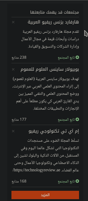 دائما ما كانت تظهر لي مجتمعات الخاصة بشبكة هيكل ميديا في المجتمعات المقترحة، ظننت في البداية أن للأمر ربط بالمتابعات التي اتابعها أو بحسب نشاطها، فجربت الضغط على زر متابعة لكنها تبقى موجودة رغم ذلك، هل تعتقد أن للأمر علاقة بالتسويق أم أنه مجرد صدفة بريئة؟