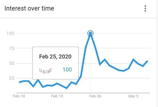 بينما على مستوى الدول العربية ونأخذ بذلك المملكة العربية السعودية كمثال خلال الفترة نفسها، فقد شهد فيروس كورونا معدلات مرتفعة في البحث تُعرض خلال هذا الرسم البياني