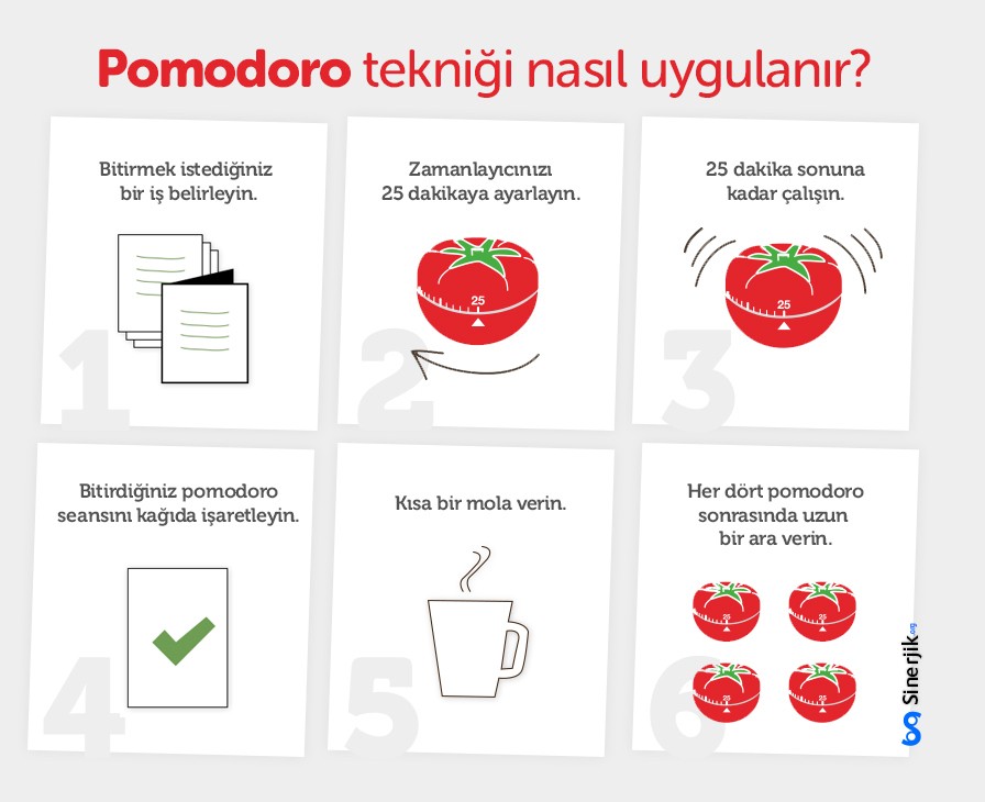 تتكون العملية الأساسية لتقنية بومودورو من 6 خطوات: