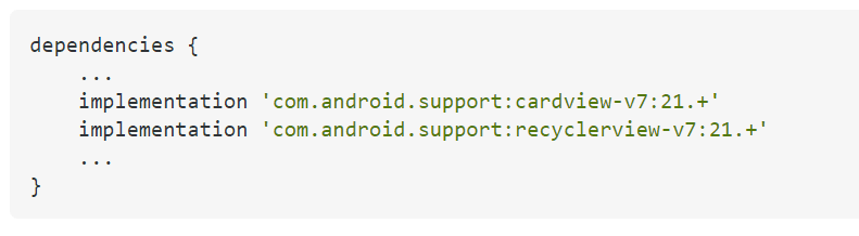implementation 'com.android.support:cardview-v7:21.+'