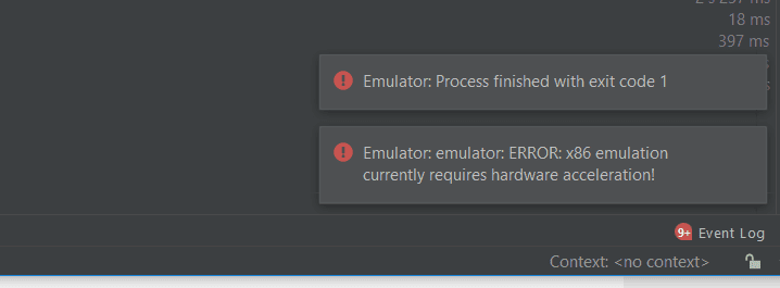 قمت بتنصيب اندرويد استوديو واتبعت كافة خطوات تنصيبة من اليوتيوب وقمت بتنصيب جميع الاضافات ومع ذالك لا يعمل محاكى البرنامج وتظهر رسالة الخطاء هذه ارجو مساعدتى فى حل المشكلة ولكم جزيل الشكر