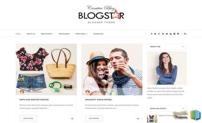 12-قالب Blogstar (قالب شبكي بطريقة رائعة في عرض المواضيع)