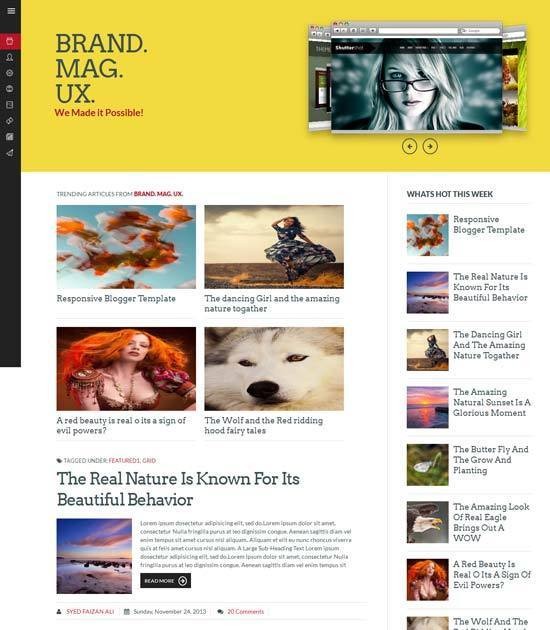 13-قالب Brand Mag UX (قالب تدوين بقائمة جانبية إحترافية وسلايد شو بسيط)