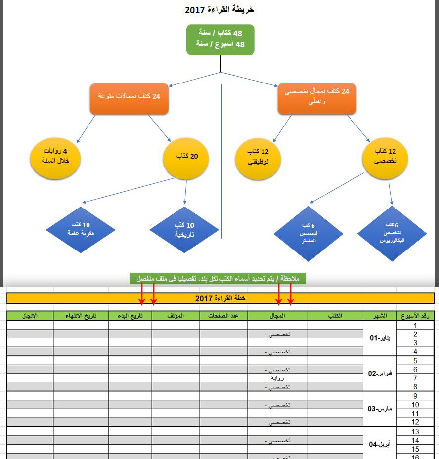 رابط ملف اكسل لجدولة عناوين وتفاصيل القراءة لـ 2017 :