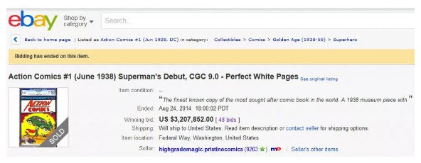فقد تم بيع نسخة ممتازة منه عبر مزاد eBay عبر الإنترنت في عام 2014 إلى المقتنيات في Metropolis، مقابل 3.2 مليون دولار؛ ليصبح بهذا أعلى سعر يتم دفعه مقابل كتاب فكاهي واحد، ليحوز الكتاب على لقب أغلى الكتب المصورة في العالم.