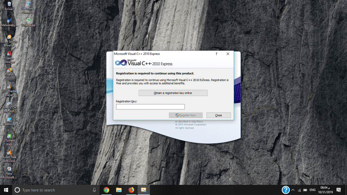 قررت ان اتعلم لغة ++C ، بحثت بين برامجي واكتشفت ان البرنامج محمل عندي ، لا اتذكر انني بحياتي حملته ، ضغطت عليه ظهرت لي هذه النافذة التي تطلب توثيق التسجيل كما فهمت!!