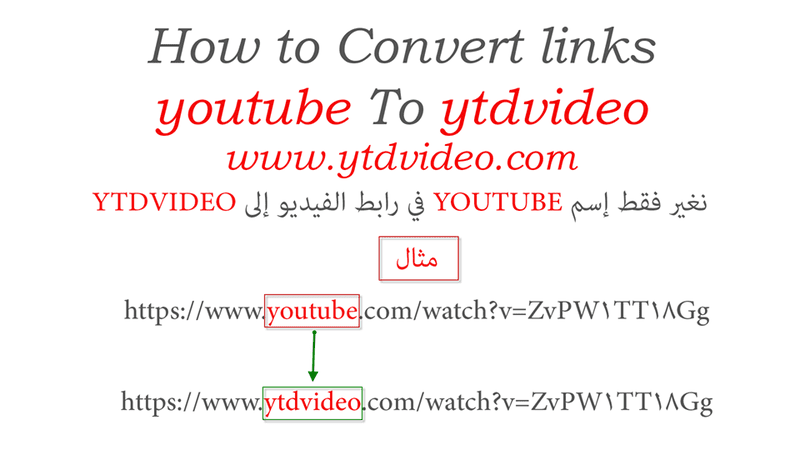 كيفية تحويل رابط فيديو اليوتيوب إلى ytdvideo سهلة يكفي تغيير كلمة youtube ب ytdvideo مثال