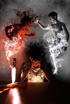 احدهما يمثل الملائكية و الاخر يتمثل بكيان شيطاني
