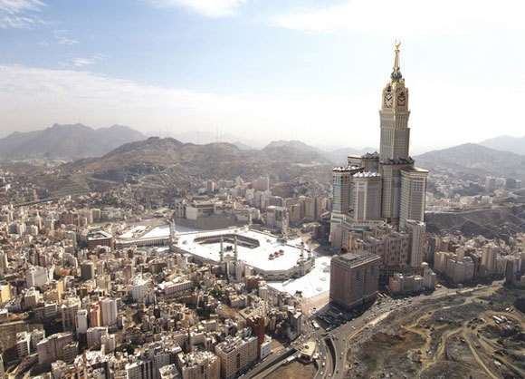 الصورة التالية توضح ارتفاع أبراج مكة مقارنة بالجبال: