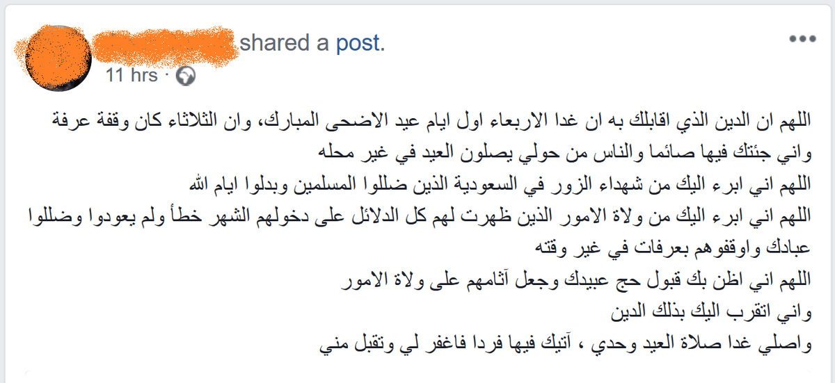 فعلى الرغم من اتباع معظم المسلمين في مصر للسعودية إلا أنه خرج بعض منهم يثور على هذا التضليل، ويعلن أنه ضد ذلك، بل ويحتفل بعيد الأضحى اليوم الأربعاء 22 أغسطس، وأمس – حيث أول أيام العيد بشكل رسمي ويحرم فيه الصيام – كان صائمًا على أنه يوم عرفة.