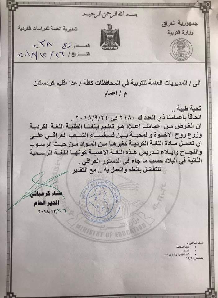 والذي احبطني جدا وهو قرار وزارة التربية العراقيه الذي تمت الموافقه عليه بخصوص اضافه اللغه الكرديه الى المنهاج في العام المقبل