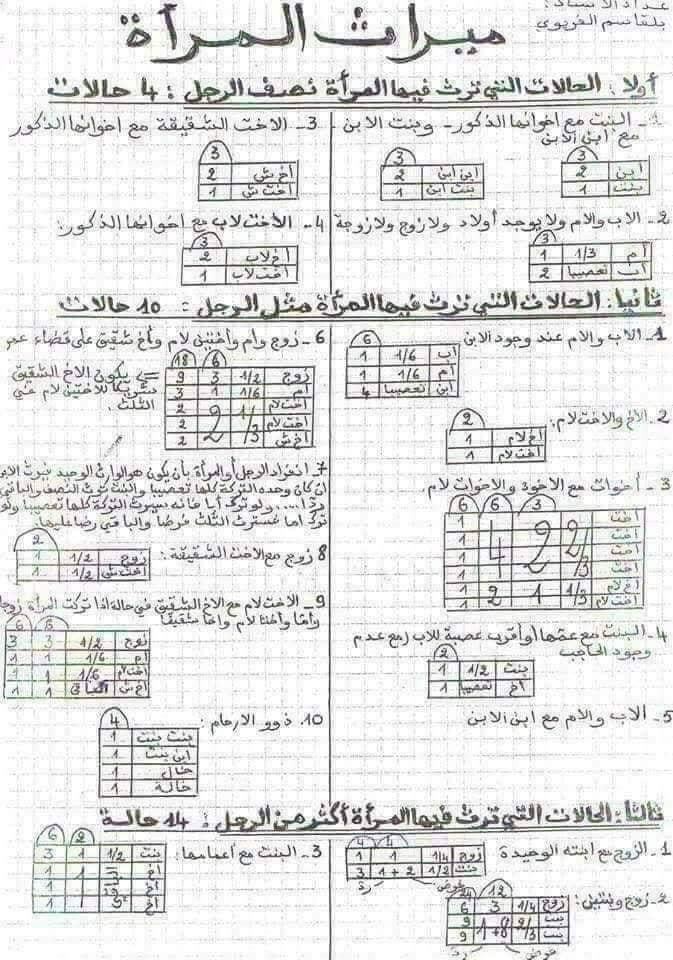 يرجى العلم ان هناك حالات ترث المراة اكثر من الرجل !