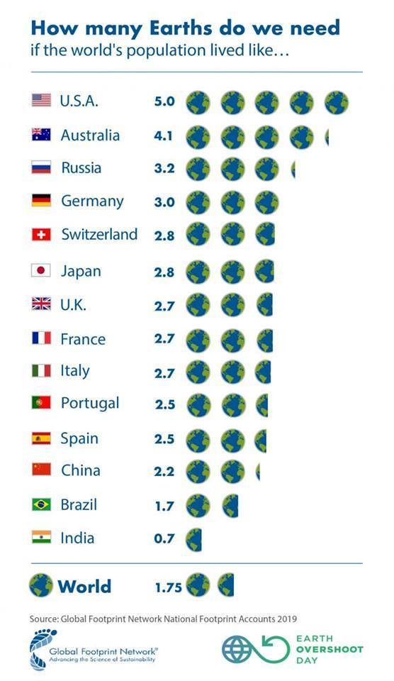في يوم 29\7 اللي فات وصلنا ل Earth overshoot day وده اليوم اللي بنكون استنفذنا أو "أحرقنا" فيه كل موارد الأرض المتاحة للعام الحالي اللي المفروض تكفينا لآخر السنة بحيث تقدر الموارد دي تعيد نفسها وتتجدد