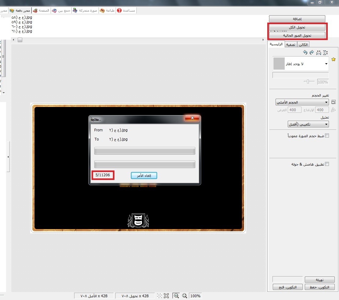 6-بعد كل ذلك..أضغط على تحويل الكل أو تحويل الصور الحالية وأختر مكان الصورة والصيغة التي تريد حفظها به..إلخ (كما تلاحظ في الصورة أقوم بإعداد +11 ألف في دقائق):