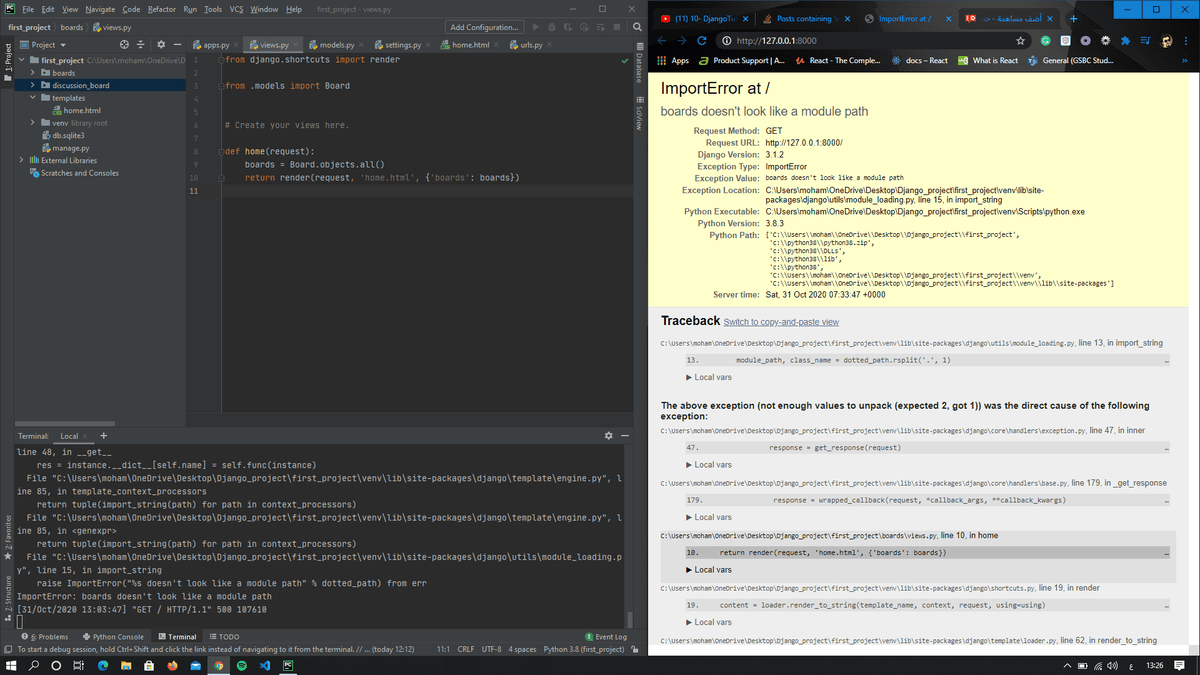 سلام عليكم شباب , عندما ربطت ملف ال html مع جانغو ظهرت لي مشكله , حاولت اوجد حل للمشكله ولكن لا جدوى من ذلك ,