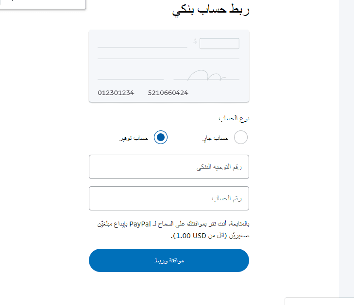 بالمتابعة، أنت تقر بموافقتك على السماح لـ PayPal بإيداع مبلغيّن صغيريّن (أقل من 1.00 USD).