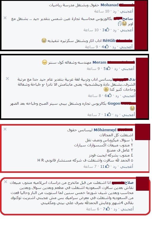 وجدت في أحد الجروبات أحد الأشخاص يسأل باقي الأعضاء عن ماذا درسوا وماذا يعملون حالياً ، وهذه صورة للمنشور