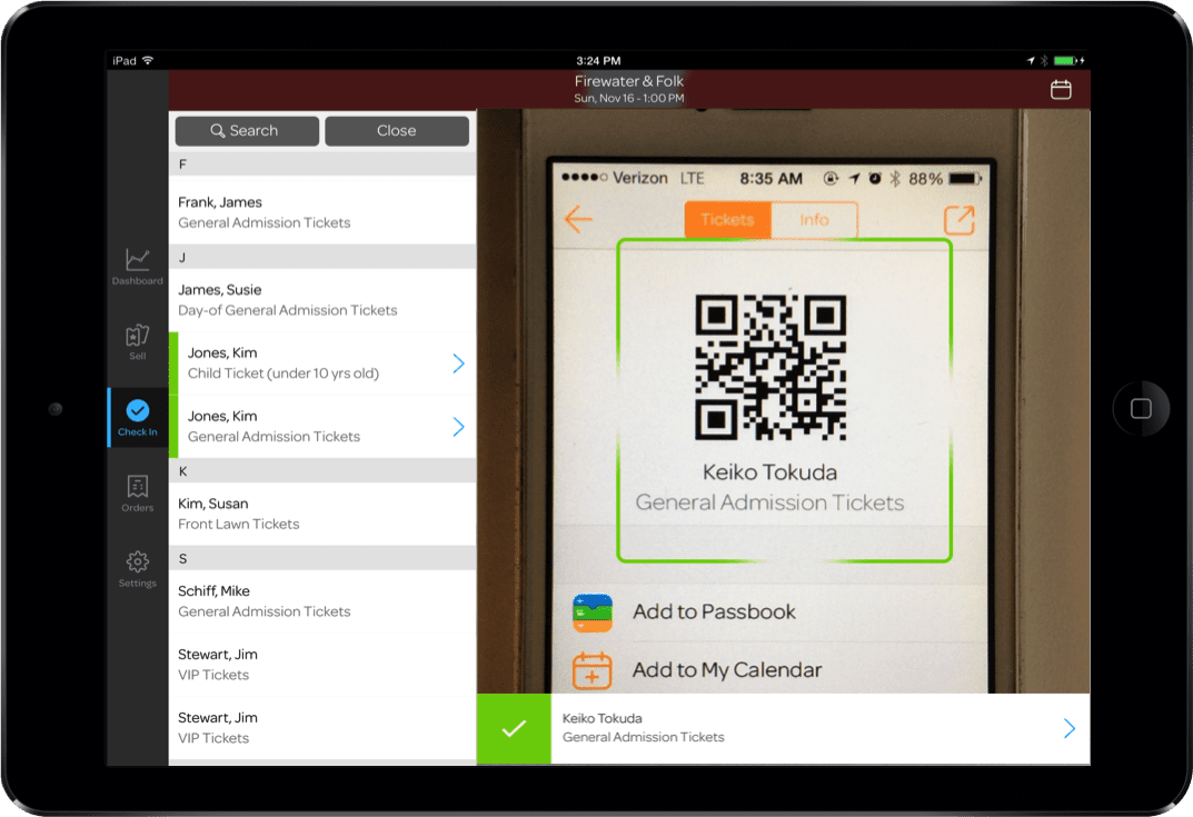 بهذا يصبح المنظم جاهزاً وما أن يصل المسجلون في الفعاليه يستطيع الضغط على علامة [+] ليقوم بمسح الباركود الموجود في التذكرة وتسجيل الحضور، ويمكننا بعد ذلك متابعة الحضور ومقارنة عدد الحضور بالمتغيبين وغيرها...
