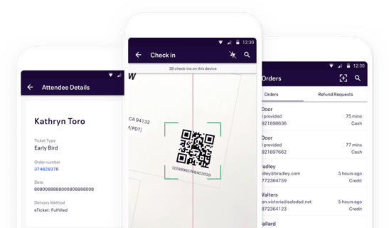 بعد ذلك نأتي لجانب المنظم حيث يجب عليه تطبيق Eventbrite Organizer، للإطلاع على بيانات التذاكر وأيضاً ليقوم برفع قائمة المسجلين عن طريق الضغط على اسم الحدث، بعد ذلك ينتقل للخيارات واختار Check In, وينتظر قليلاً حتى يتم تنزيل بيانات المسجلين- بعد تنزيل البيانات يمكن استخدام البرنامج بدون أنترنت-.