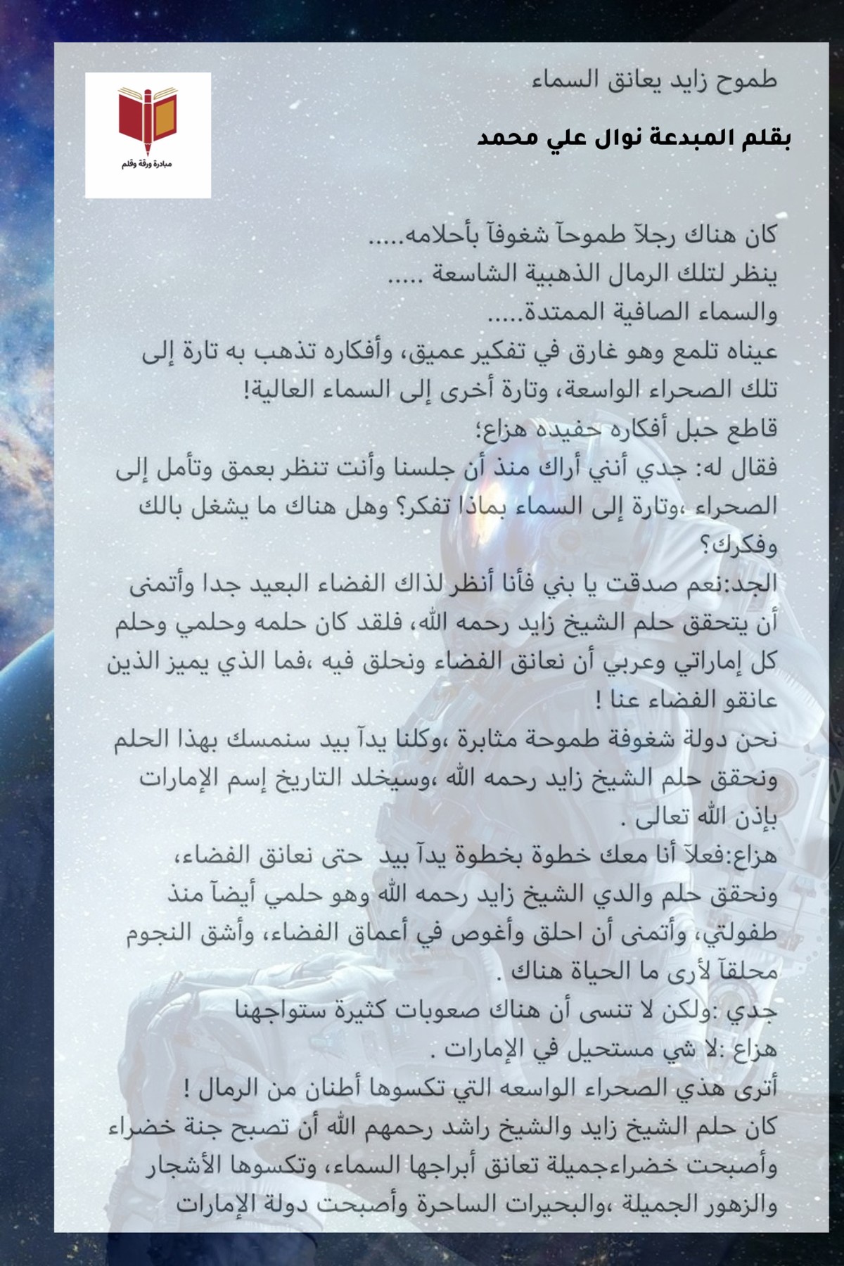 مشاركة قصة بعنوان طموح زايد
