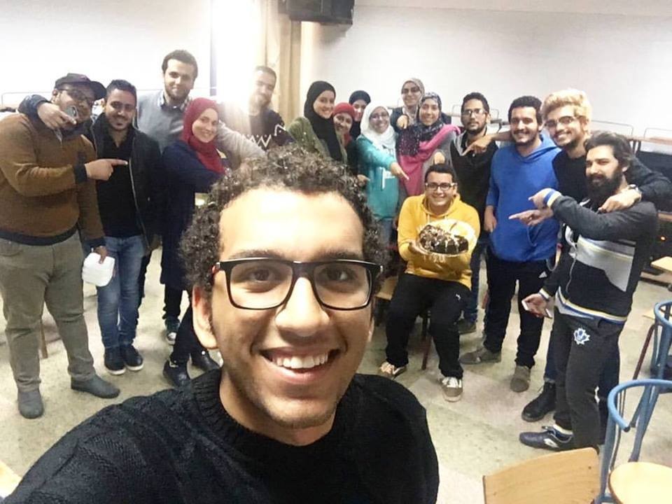 بينما أنا معصب الرأس لتسكين الصداع قليلاً اليوم صباحاً اذ بالأنوار تنطفئ و أرى شرارة ألعاب نارية مع المقطع الموحد " Happy Birth Day To U ’ سنة حلوة يا جميل ... " و ما إلى ذلك وانا لا افهم شيئاً .. فلا أحد يعلم عني ما يمكنه معرفة يوم ميلادي الا القليل .. ثم التفوا حولي وبدأنا الاحتفال و التقطنا العديد من الصور ^^