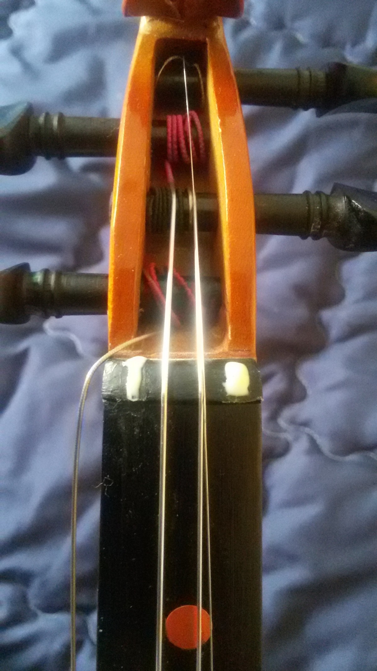 استغرق وقت تبديل الأوتار ذاك اليوم تقريباً أربع ساعات بين تركيب و ضبط ثم رفع الفرس مجدداُ و تركيب مجدداً و ضبط..و رغم التوتر الذي شعرت به التقطت بعض الصُّور حتى أُفرد مشاركة خاصة حول تبديل الأوتار في مجتمع عالم الموسيقى لاحقاً، تستطيع أن تتخيل أنه لا يوجد أي مصادر حول هذا باللغة العربية...