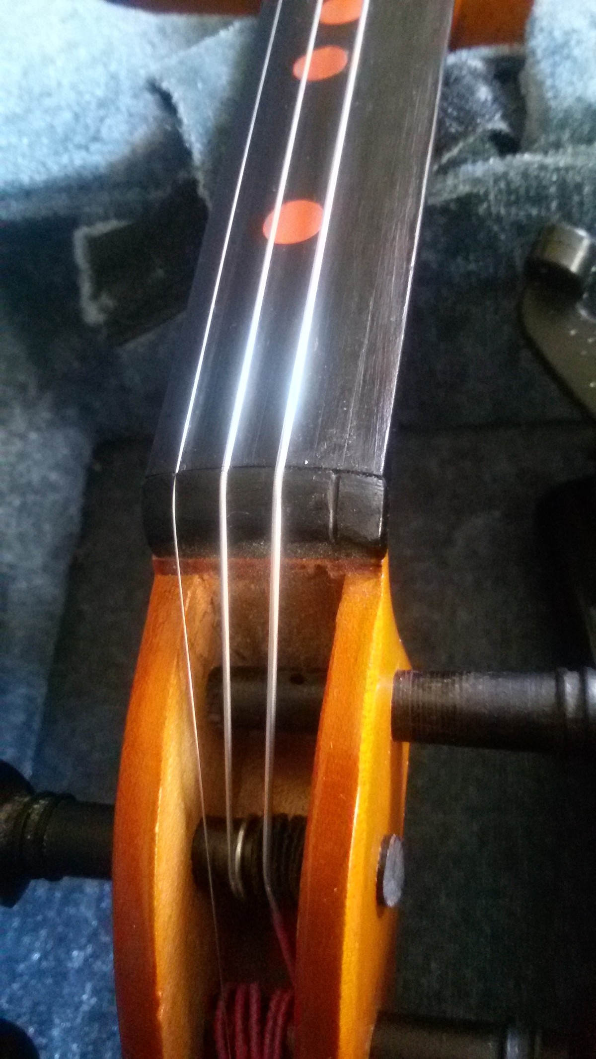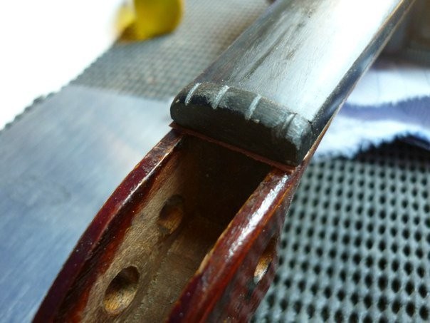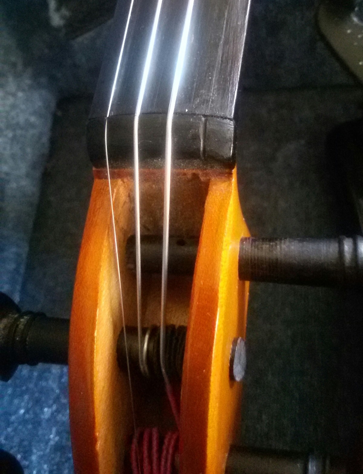 عظيم جداً، قمت بهذا لوحدي و بدون أضرار..الآن وقت ضبط الأوتار من خلال مفاتيح التحكم ليعطي كل وتر النغمة الصحيحة، فبعد التركيب تكون الأوتار بحاجة للكثير الكثير من الضبط..بدأت بالوتر الأغلظ ضبطُّه تمام، ثم الذي بعده و الذي بعده، حتى وصلت لوتر E..دوّرت الوتر مل ثم مل آخر ثم...صوت حاد يصدر عن الكمان، هل حصل أن كنت تمشي في زقاق مظلم و سمعت زمجرة حيوان غاضب من خلفك و تملكك الفزع الشديد، هذا كان حالي بالضبط..تمالكت أعصابي لأرى الضرر، أول شيء خطر على بالي أن الوتر انقطع فهو الأرفع و غالباً ما ينقطع، و لكن ما رأيته كان ليس وتر مقطوع..بل الفرس أو bridge -قطعة خشبية ترفع الأوتار تكون بشكل عمودي على الكمان دائماً- قد سقطت..يا للهول، لا أعرف هل هذا أسوأ من انقطاع الوتر أم ماذا..وضعت الكمان في الحقيبة..و إلى يوتيوب طبعت بسرعة HOW TO FIX A COLLAPSED BRIDGE و لارتياحي وجدت العديد من الفيديوهات حول الموضوع، شاهدت عدد من الفيديوهات، و انتظرت حتى هدأتُ، و مجدداً أخرجت الكمان و قمت بالخطوات وووو...تم!