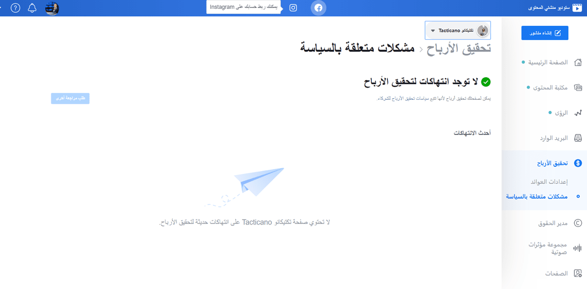 الصفحة لم تنتهك سياسة تحقيق الربح