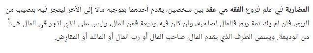 ما علمته أنها ستكون "مضاربة" شخص يمول والآخر يعمل ويحصل كل منهما على نسبة من الربح تكون الأعلى منها للعامل وهو أنا