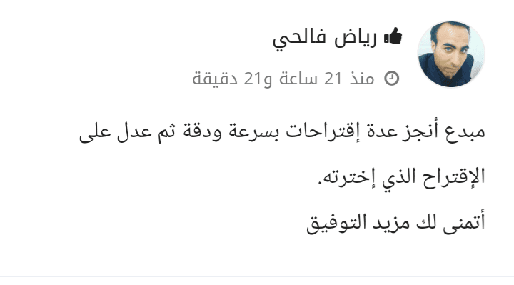 كذلك أتعامل مع مصممة على خمسات من مصر لديها روح إبداعية يفتقدها الكثير ،المشكل أنني قلت لها حولي على مستقل أحسن لكن دائما أجدها في خمسات لذلك أرسل لها الفكرة و تنجز بسرعة و بطريقة إبداعية أحسن ممن أتعامل معهم على أرض الواقع ،في هذه الفترة هي في عطلة لذلك حسابها معطل