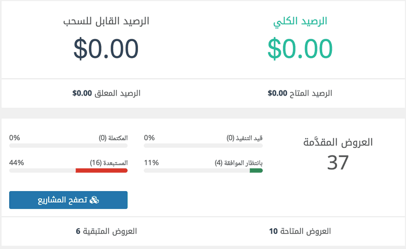 منذ عام اقدم عروضي على موقع مستقل للمشاريع المفتوحة، ولكن لا اعلم ما هو سبب عدم قبول عروضي، مع ان اعمال من تقبل عروضهم اقل احترافية من اعمالي، لا اظن ان قيمة العرض هي السبب الاساسي لان قيمة عروضي تكون دائمة متوسطة، وكل هذا فقط من اجل ان انجز احد الاعمال كبداية لي.
