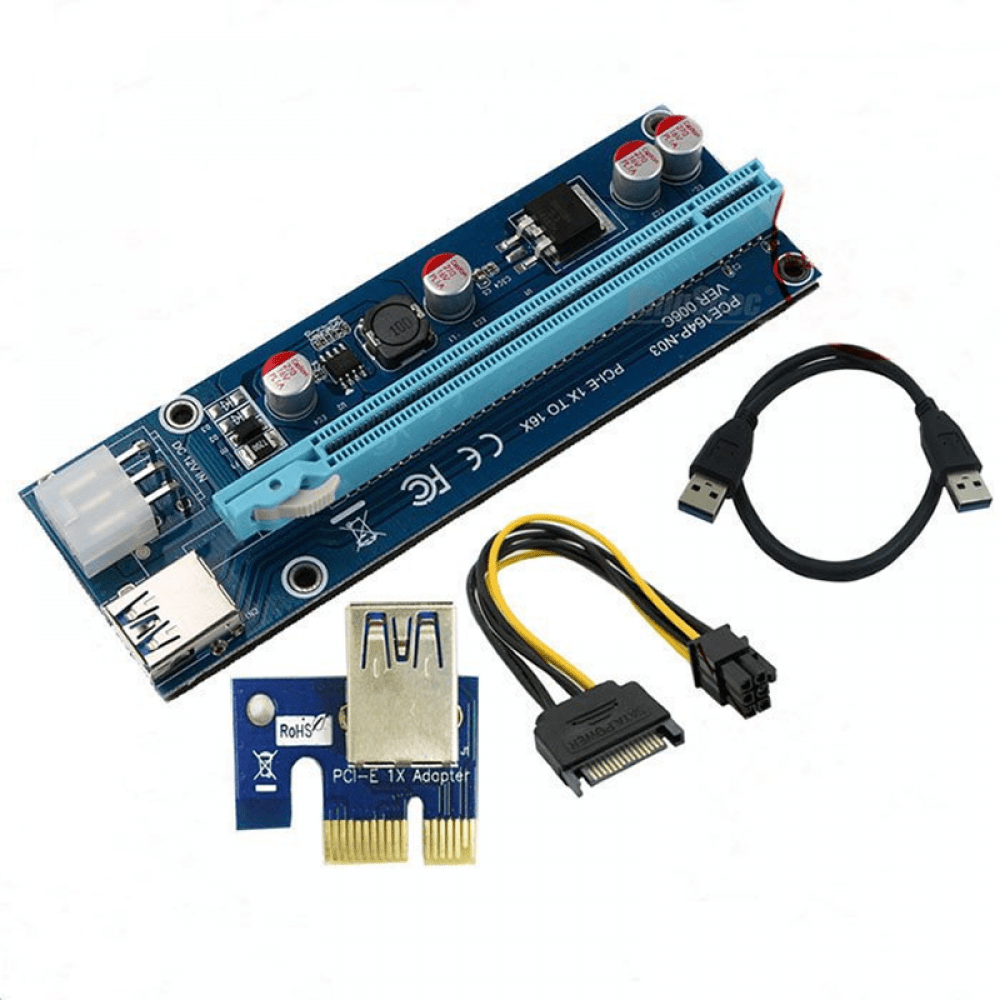- الرايزر Riser وهو قطعة وظيفتها توصيل كارت الشاشة خارج اللوحة الأمر عبر منافذ PCIe والتالي صورة لها: