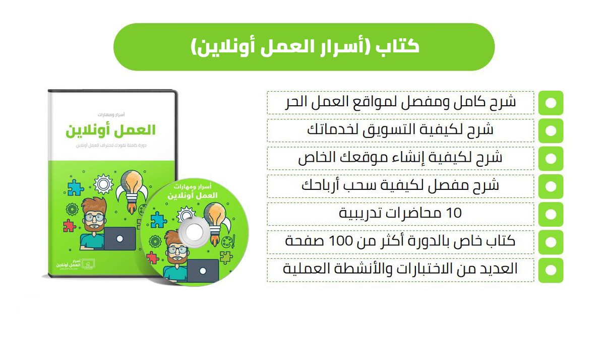 بتكلم في الكتاب عن شرح تفصيلي عن العمل الحر العالمية والعربية مروراً بكيفية التسويق لخدماتك إلى سحب أرباحك بمواقع العمل الحر المختلفة.