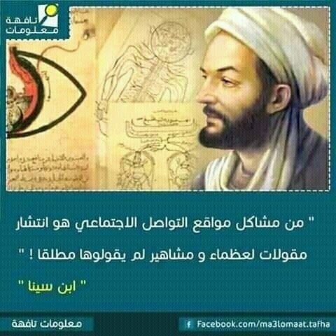 هههه أعجبتنى الصورة، إبن سينا توفي عام 1037م لكنه كتب عن مواقع التواصل الاجتماعي التي ظهرت مع ظهور الهواتف أي بعد 1950م ما شاء الله اعادة إحياء "أمزح".