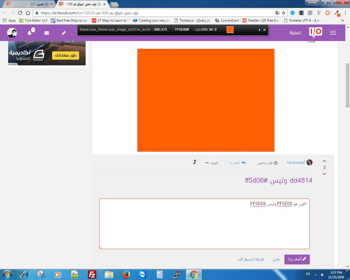 اللون في الصورة هو FF5E00 وليس FF5D06 أي أداة استخدمت؟