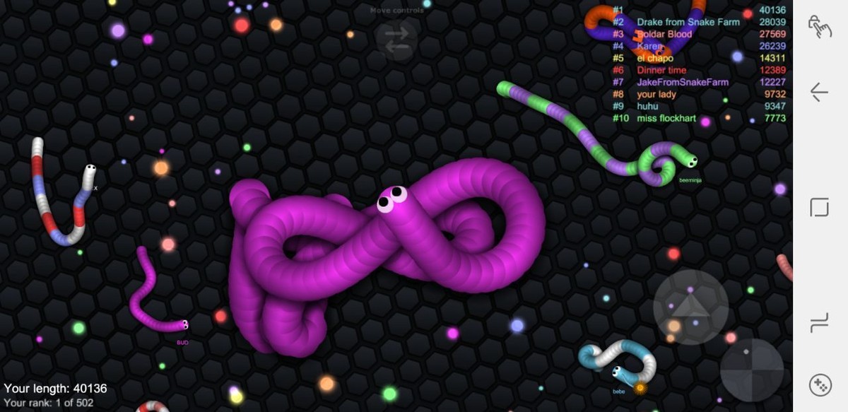 اسم اللعبة Slither لها تطبيق على الهواتف بحوالي 100 مليون تحميل و يمكنك لعبها مع العالم أو الروبوت، حاليا أفضل اللعب مع الربوت بسبب الاتصال أو يمكنك لعبها على الموقع التالي Slither.io