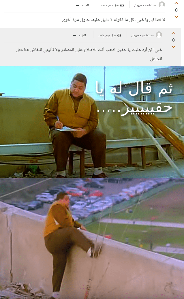 هذه مساوئ ميزة المجهول، وهو ما حظرت منه في البداية فربما كان هذان التعليقان لشخص واحد يحاول إفساد النقاش