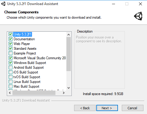 اليوم وفي بداية طريقي لتعلم صناعة الالعاب وعند تنزيلي لبرنامج unity واجهت مشكلةعند التنزيل وهي اختيار الخصائص