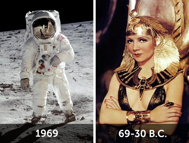 بني الهرم الأكبر في الجيزة حوالي عام 2540 قبل الميلاد بينما عاشت كليوباترا في حقبة أقرب مما تتوقع إلى عصرنا(69-30 قبل الميلاد).
