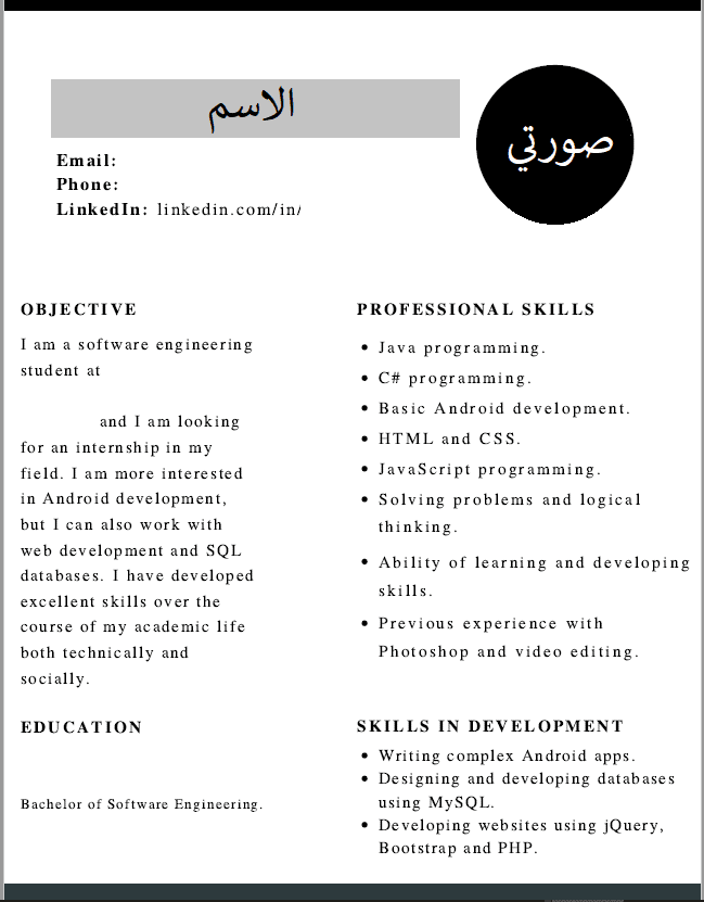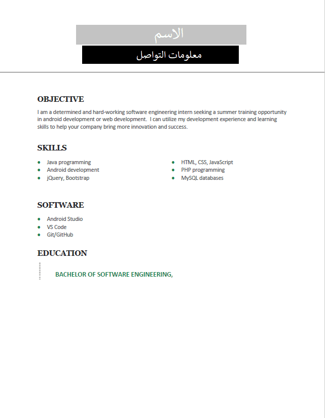السيرة الذاتية الأولى (راجعتها مع مختص):