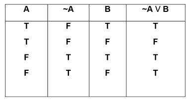 جدول الحقيقة التالي يبين لنا كيف أن العبارة أعلاه هي نفسها ال implication :