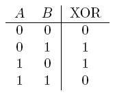 و يكون صحيحا عندما تكون احداهما خاطئة، جدول الحقيقة الخاص به يكون كالتالي :
