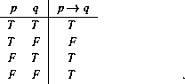 القضية q <- p تكون خاطئة اذا كان الاول صحيح و الثاني خطأ ، و تكون صحيحة عدا ذلك و منه جدول الحقيقة الخاص